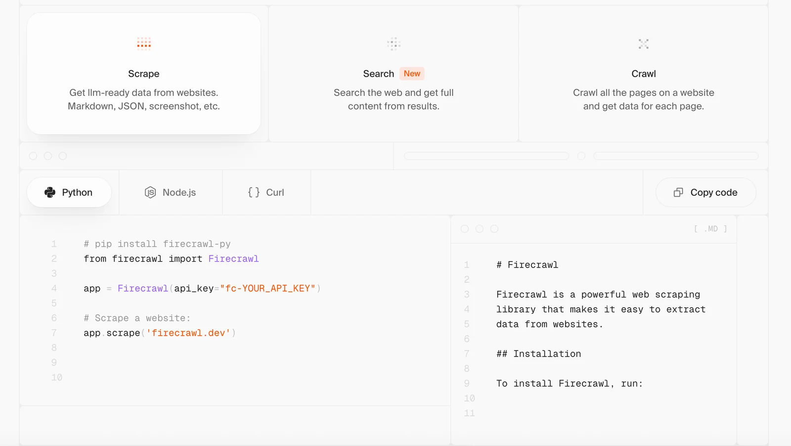 Web crawling, scraping, and search API delivering clean, structured web data for AI agents and builders.