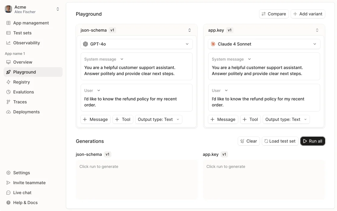 Agenta is an open-source LLMOps platform that helps engineering and product teams build, evaluate, debug, and monitor production-grade LLM applications. It provides a web UI and toolset for prompt engineering, versioning, deployment to environments, automated evaluation pipelines, and observability dashboards to track model behavior and performance. By combining prompt management, testing, and runtime monitoring in a single platform, Agenta reduces iteration time, improves reliability, and enables teams to adopt best practices for building robust LLM apps.