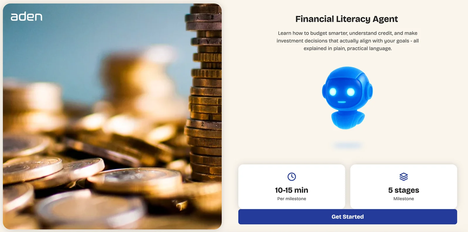 Professor-style conversational agents by Aden providing tutoring, research help, and academic guidance in a customizable agent persona.