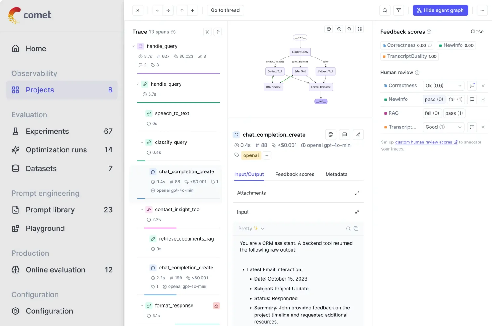Comet is a developer platform that enables teams to evaluate, track, and monitor machine learning models throughout the ML lifecycle. It provides best-in-class evaluation tooling for large language models (LLMs), experiment tracking to capture runs, hyperparameters, metrics and artifacts, and production monitoring to detect regressions and performance drift. Comet centralizes model evaluation results and observability data so engineers and researchers can compare experiments, reproduce results, and maintain model quality in production.