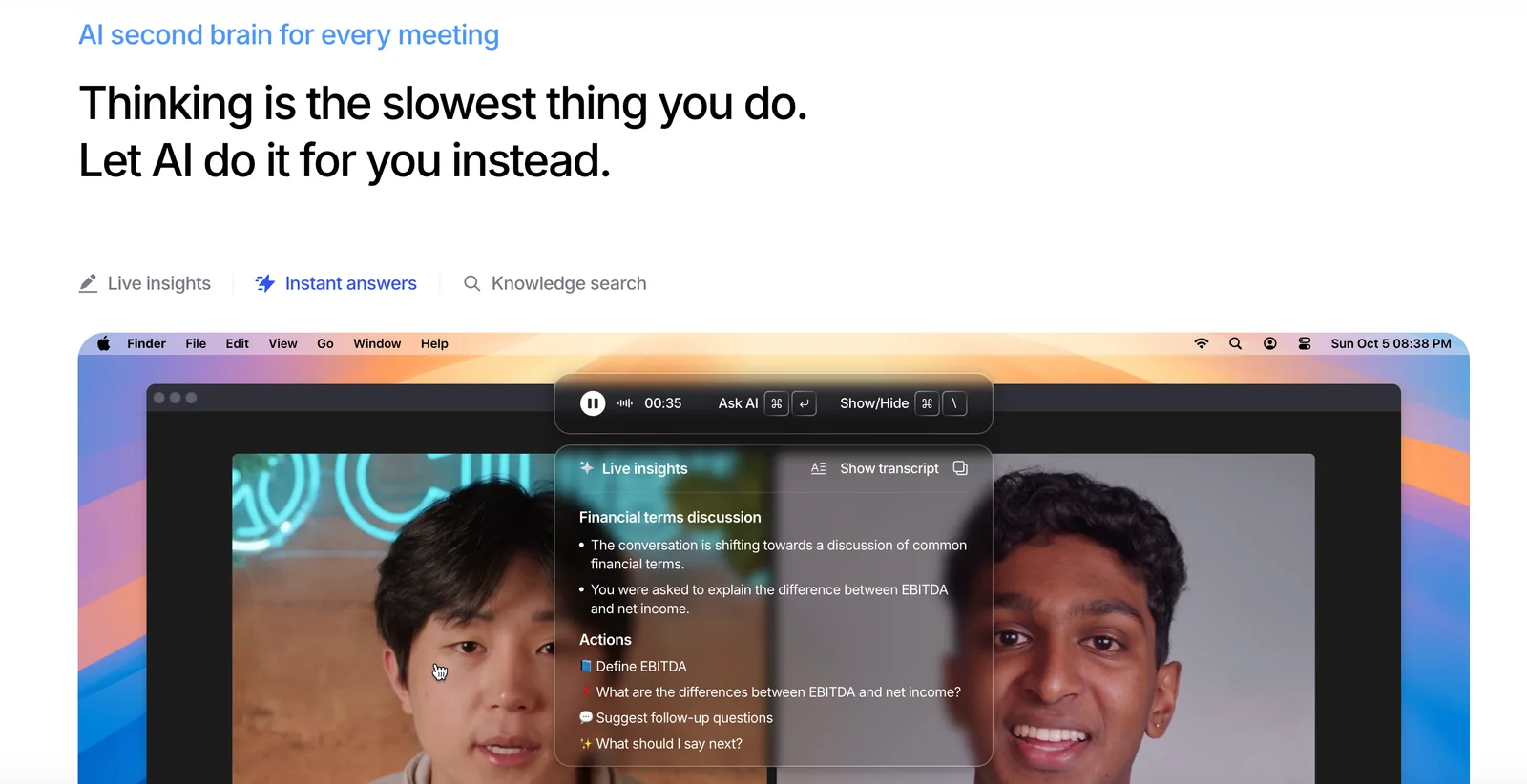 Live meeting assistant that provides real-time notes, instant answers, and actionable insights during calls to help participants in the moment.