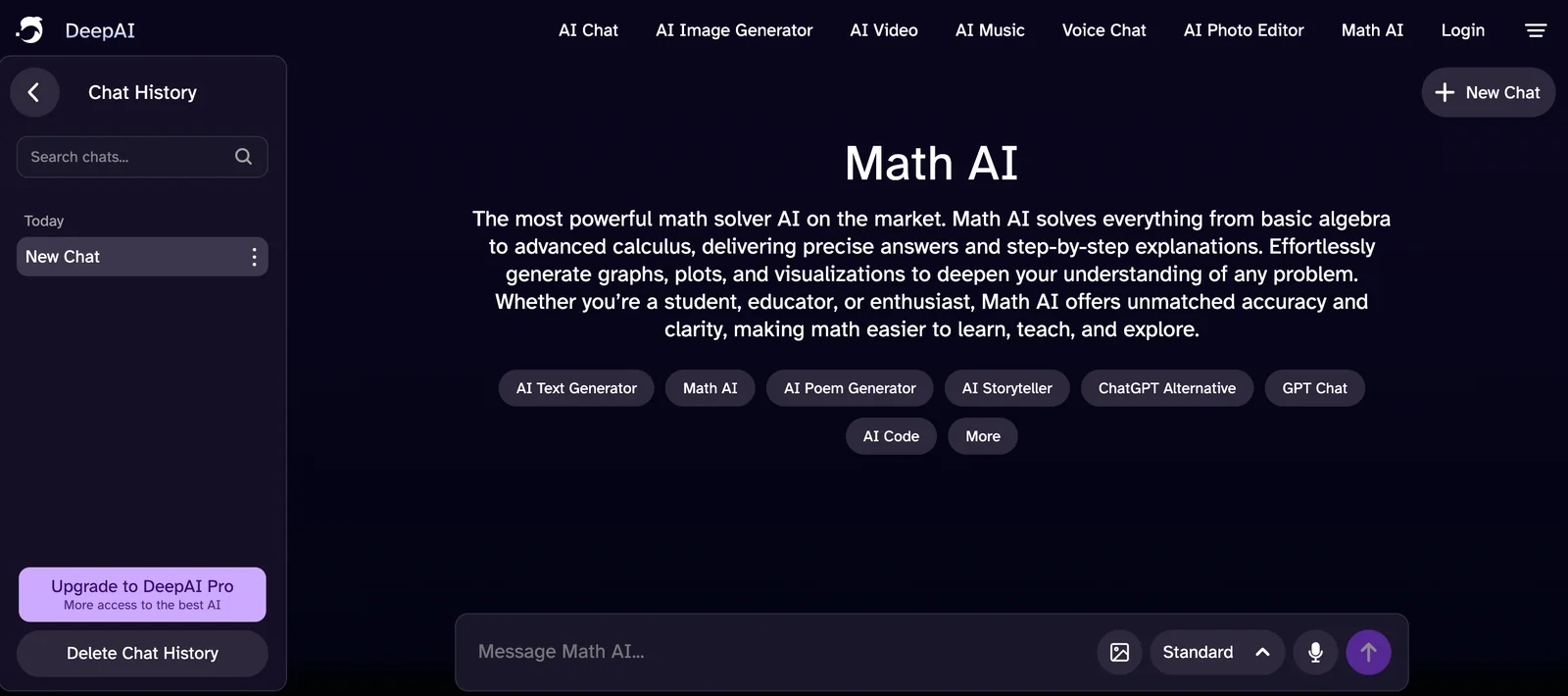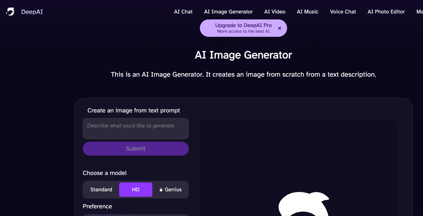 DeepAI is a web-first creative AI platform that provides a suite of generative and analysis tools accessible via browser and APIs. With a single prompt users can generate images, edit photos, create short videos, compose original music, and interact with chat assistants that can browse the web or speak with realistic voices. DeepAI also exposes many of its models through simple SDKs and REST APIs (including a JavaScript client), enabling developers to integrate generation, moderation and multimodal capabilities into applications. The platform emphasizes accessibility for both non-technical creators and developers by offering instant browser experiences and programmatic endpoints for automation and production use.