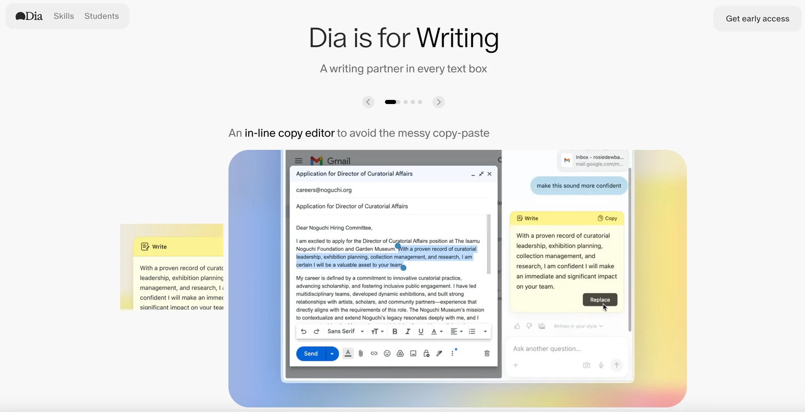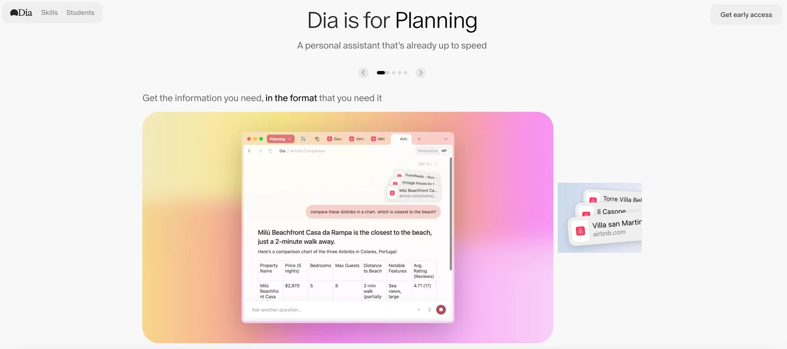 Dia is an AI-first web browser from The Browser Company that enables conversational interaction with the content of your open tabs. Users can ask questions, summarize pages, and perform multi-tab research by having the browser's assistant access and reason over the content currently loaded in tabs. It supports personalized writing (generate or rewrite text in your voice), task planning, shopping assistance, and fast learning workflows while emphasizing user-controlled privacy and data handling. Dia integrates browsing and conversational capabilities to reduce context switching and accelerate web-based tasks.
