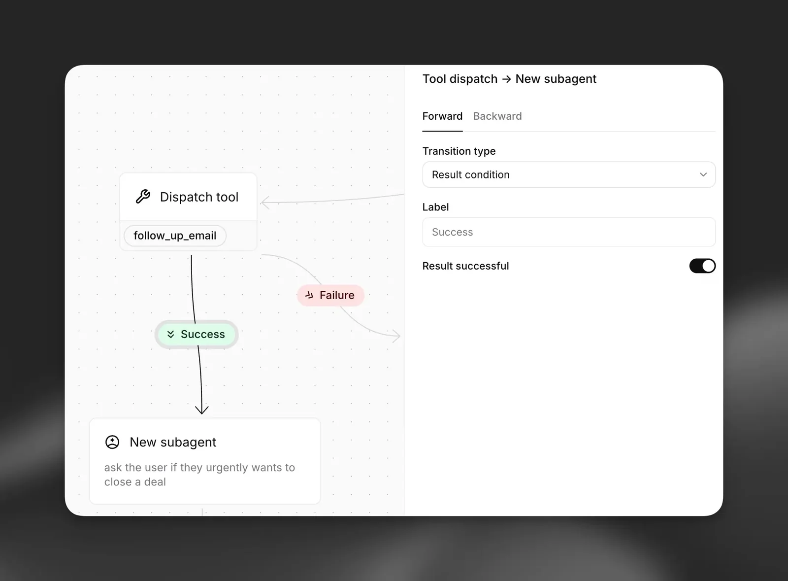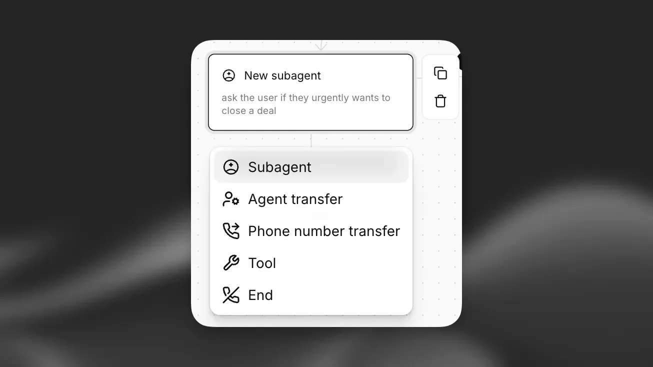 Visual graph-based editor to design sophisticated conversational agent workflows and connect them to ElevenLabs SDKs and tools.