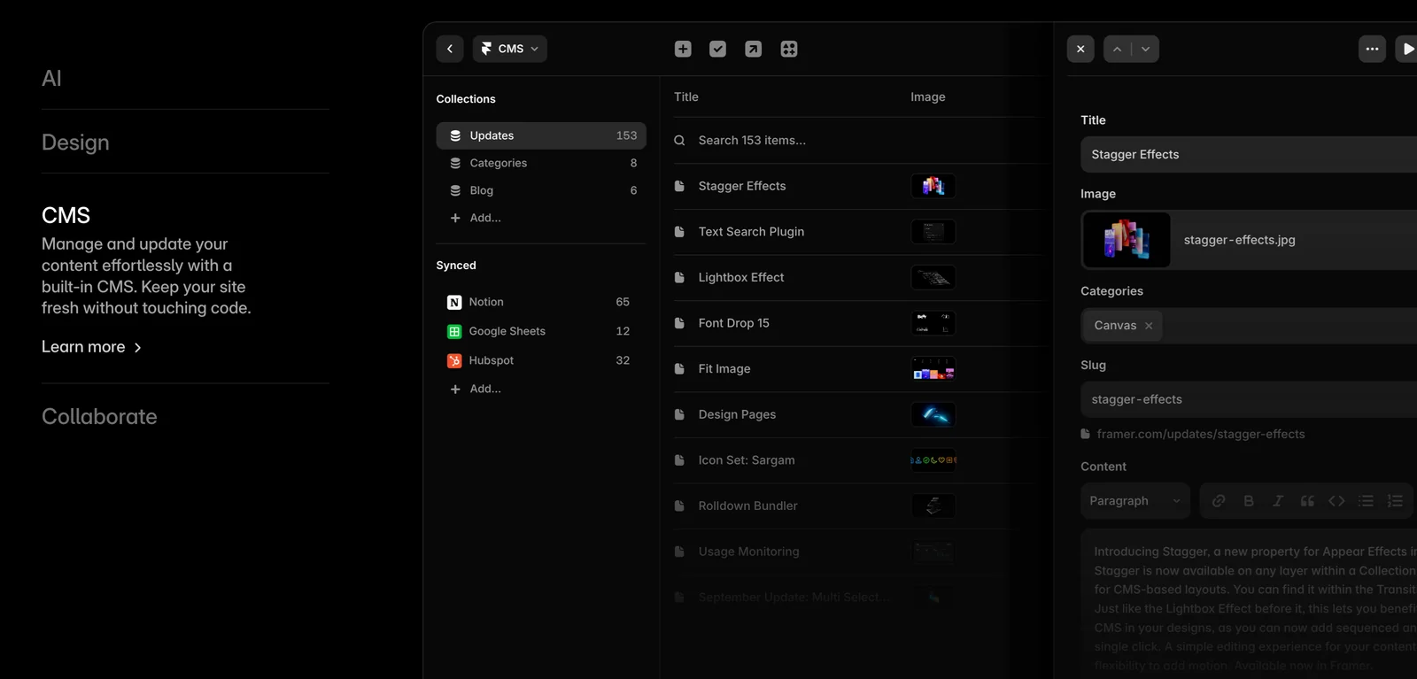 Framer is a no-code web builder that enables designers and teams to design, build, and publish professional, custom websites at any scale. It combines a visual design surface with powerful site-building capabilities — including a CMS, built-in SEO tools, performance-oriented hosting, and real-time collaboration — so teams can move from concept to live site without handoff overhead. Framer emphasizes design freedom and interactive, high-performance sites while integrating collaboration and content management to support production workflows.