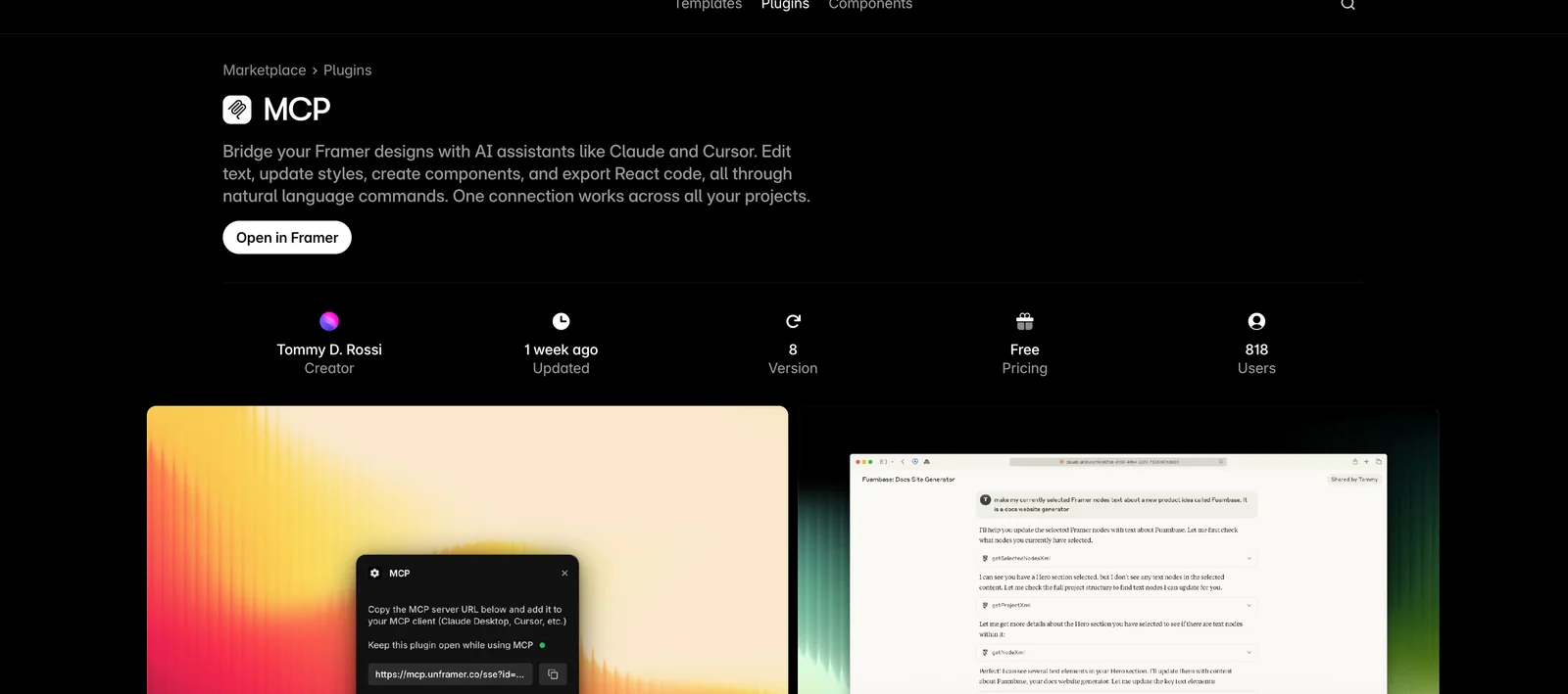 https://www.framer.com/marketplace/plugins/mcp/💡 MCP (Model Context Protocol) enables AI assistants to securely interact with local and remote resources.