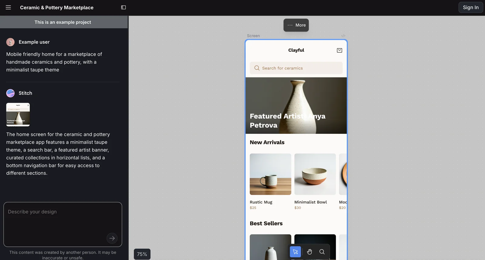 Generates UI designs for mobile and web from prompts, sketches, or images to speed design ideation and prototyping.