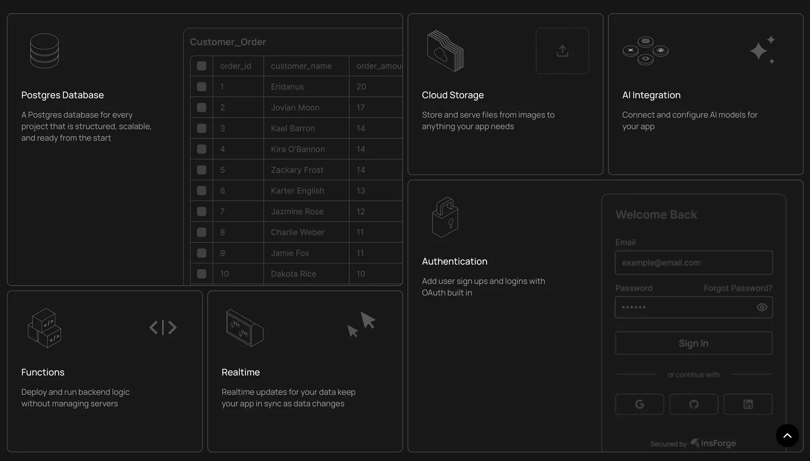 InsForge is a backend platform designed specifically for AI-assisted and agent-driven development. It provides managed backend services — authentication, databases, object storage, serverless functions, and AI integration hooks — that can be connected to any agent. InsForge positions itself as an "Agent-Native Supabase Alternative," enabling AI agents to build, manage, and operate full-stack applications autonomously. Its value lies in streamlined integration with agent workflows, rapid provisioning of backend capabilities, and tooling tailored for agent orchestration and AI-assisted development.