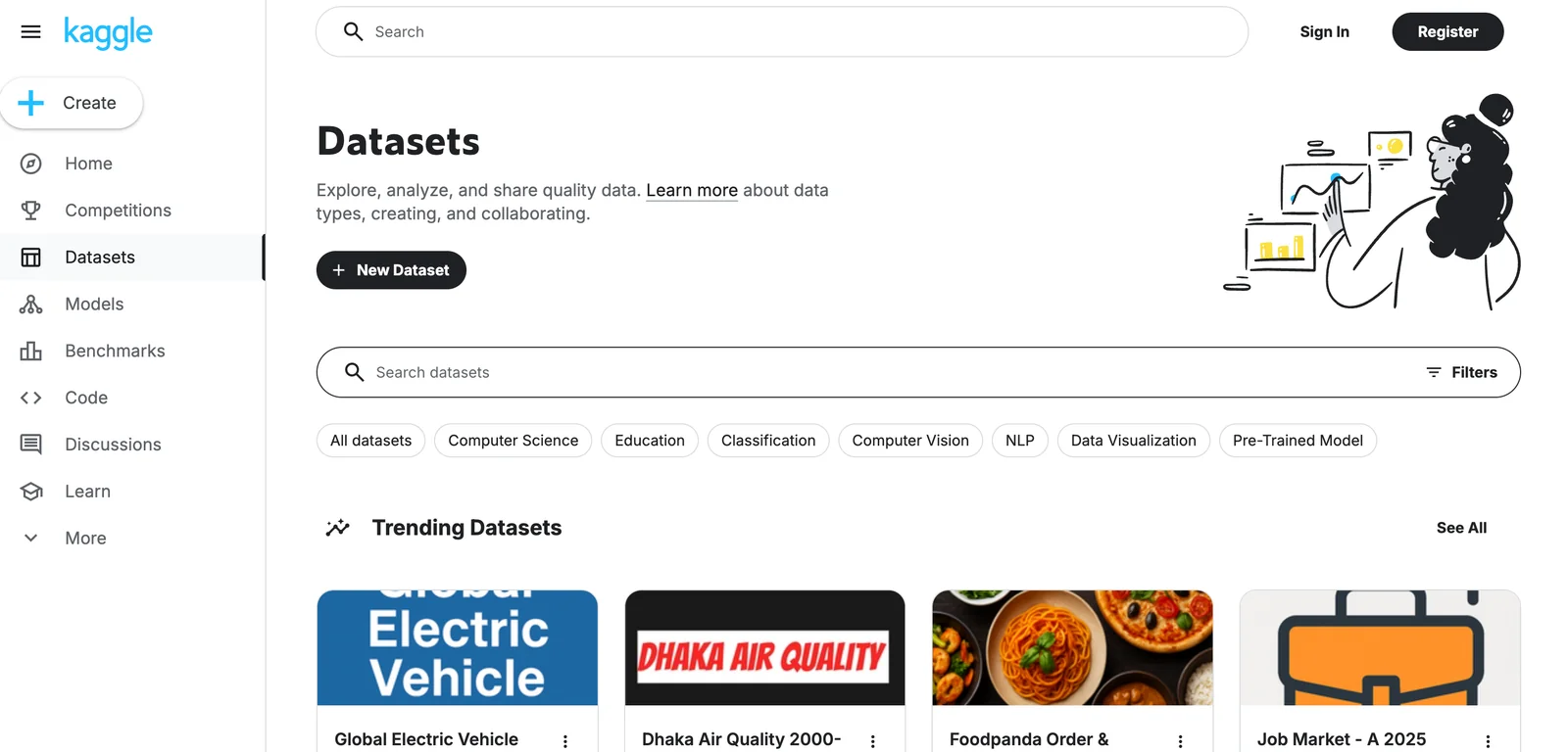 A global data science community and platform for datasets, competitions, cloud notebooks, learning, and collaboration.