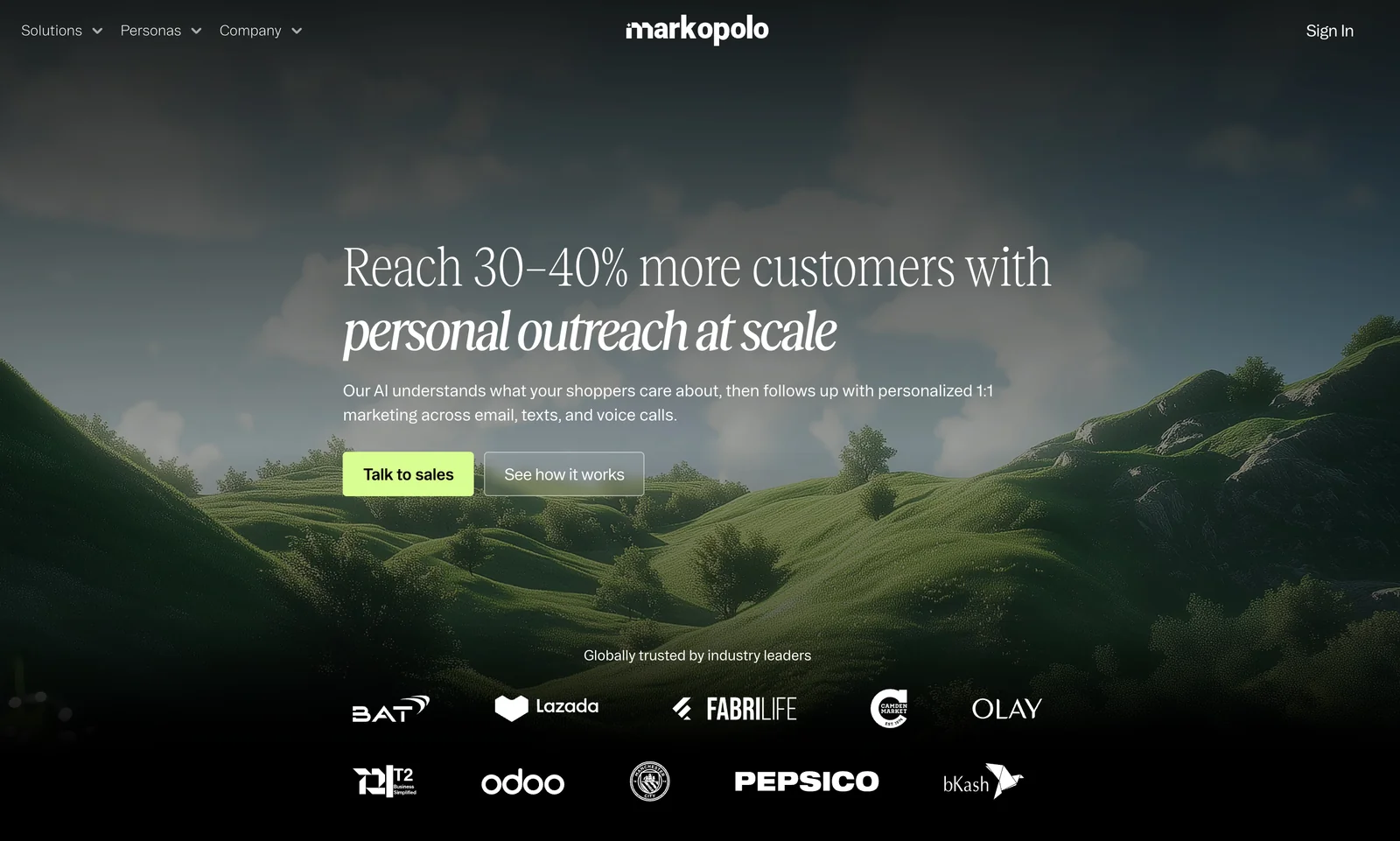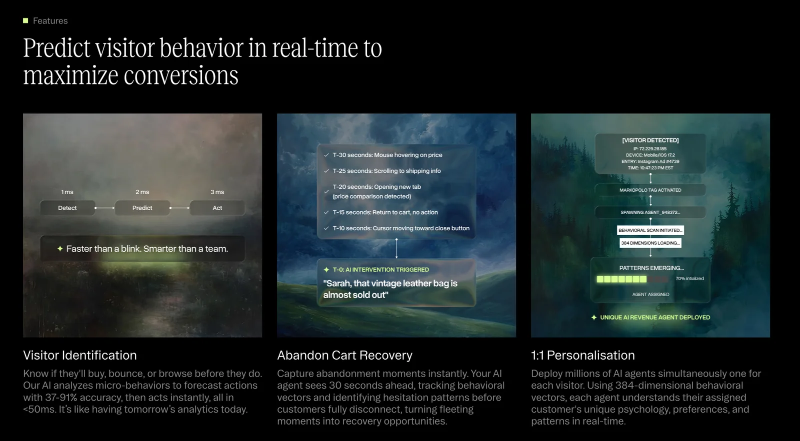Markopolo provides AI-driven revenue agents and a marketing personalization platform that automates end-to-end customer journeys. It analyzes customer behavior to predict intent, generates and sends highly personalized messages, and orchestrates campaigns to recover abandoned sales and boost conversions. The platform also creates ad copy and cross-posts content, enabling small and mid-sized businesses to scale personalized outreach without manual effort. Markopolo's value lies in converting warm leads at higher rates by combining behavioral analytics, automated messaging, and autonomous revenue workflows.
