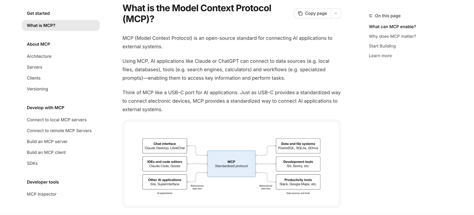 An open standard protocol that connects LLMs to external data sources and tools to share rich contextual information securely.