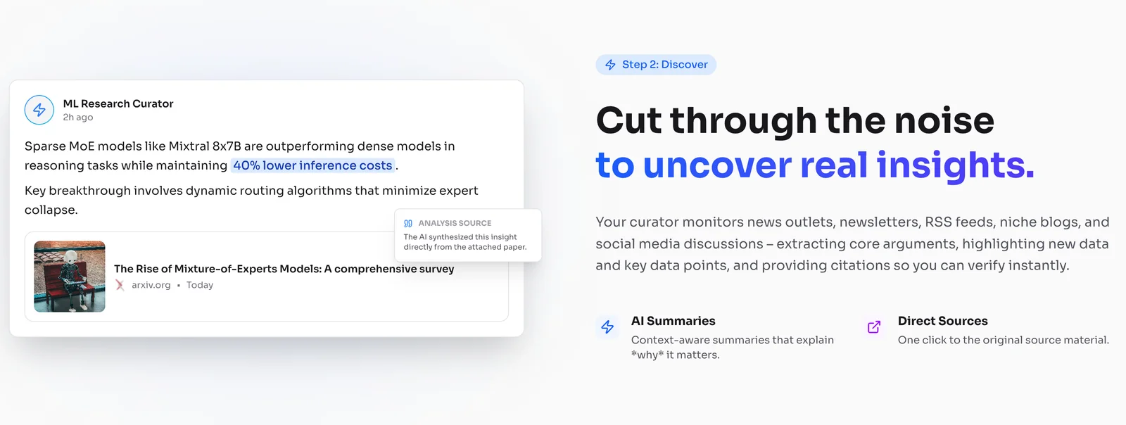 Build custom AI curators that monitor the web and surface the content that matters to you.