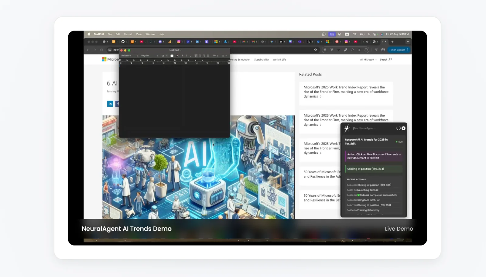NeuralAgent is an AI-driven desktop assistant that perceives your screen and interacts with your computer like a human user. It can open applications, click buttons, navigate interfaces, and manage files in response to plain-English commands. By combining screen-level perception with direct UI control, NeuralAgent automates repetitive workflows, performs multi-step tasks, and enables hands-free operation of desktop software. Its value lies in reducing manual effort for routine tasks and enabling natural-language control of complex desktop interactions.