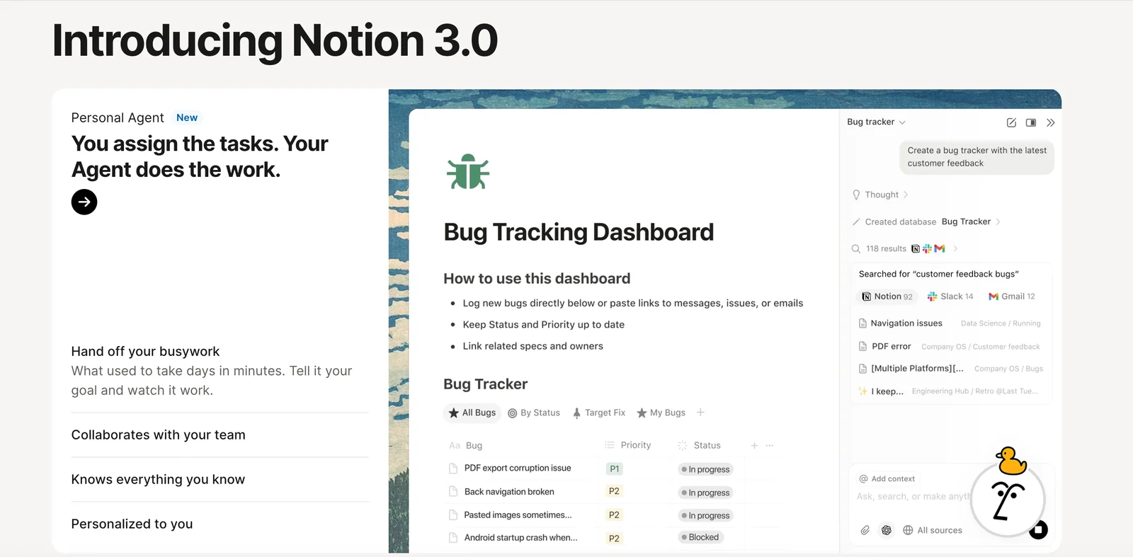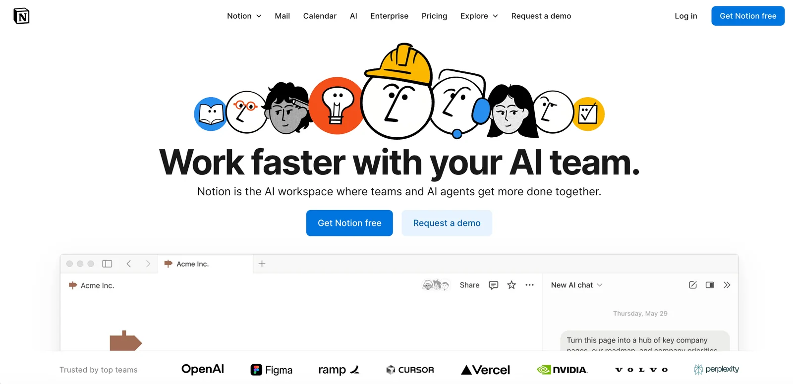 Notion is an all-in-one connected workspace that combines documents, notes, databases, and project workflows into flexible pages and templates. It embeds AI capabilities—search, writing assistance, summarization, and content generation—directly into the workspace to speed knowledge capture, editing, and discovery. Notion supports real-time collaboration, sharing, and developer integrations (APIs and SDKs) so teams can extend and automate workflows. Through partnerships (for example with Anthropic) and built-in developer tooling, Notion aims to turn static knowledge repositories into an intelligent, actionable workspace that amplifies human productivity.