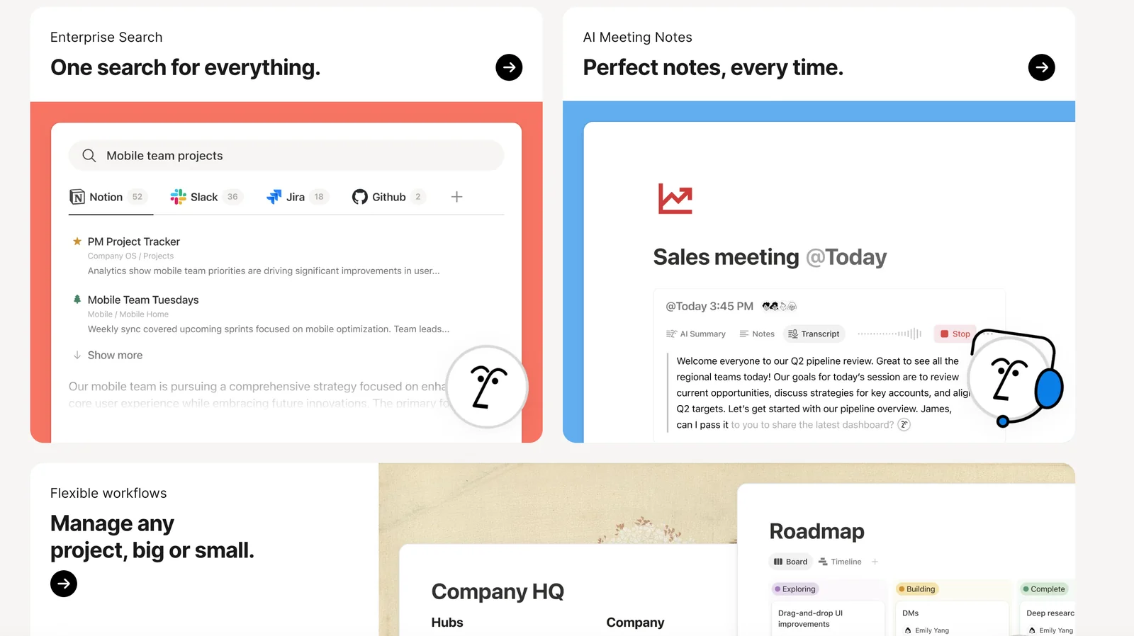 Connected workspace that unifies docs, notes, knowledge, and workflows with built-in AI for search, writing, and collaboration.
