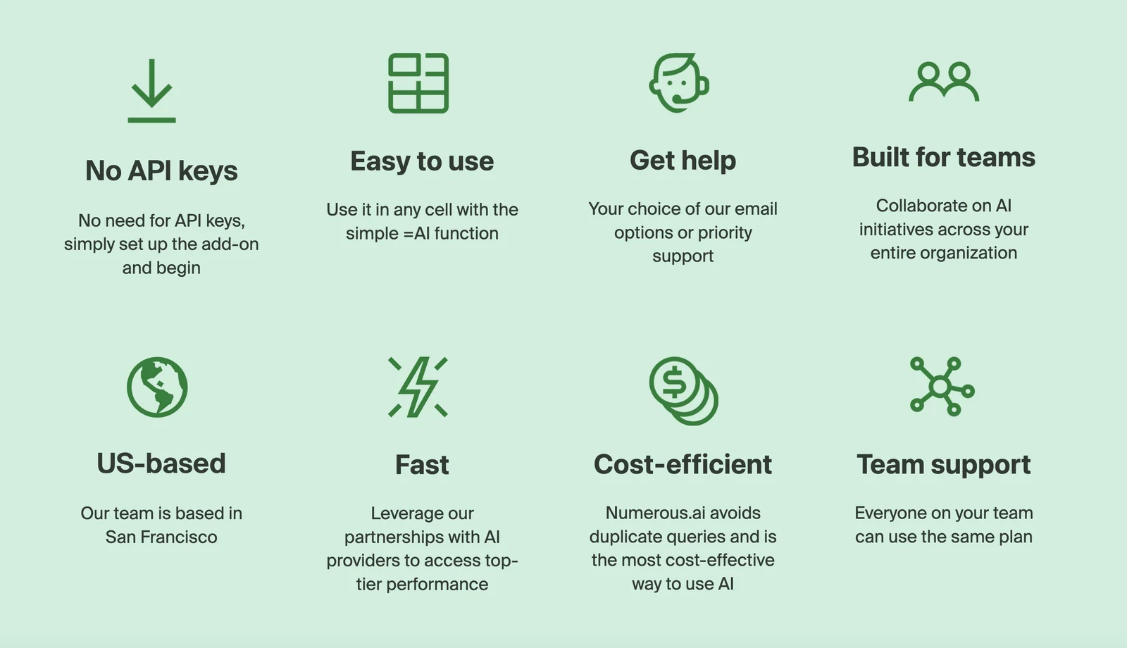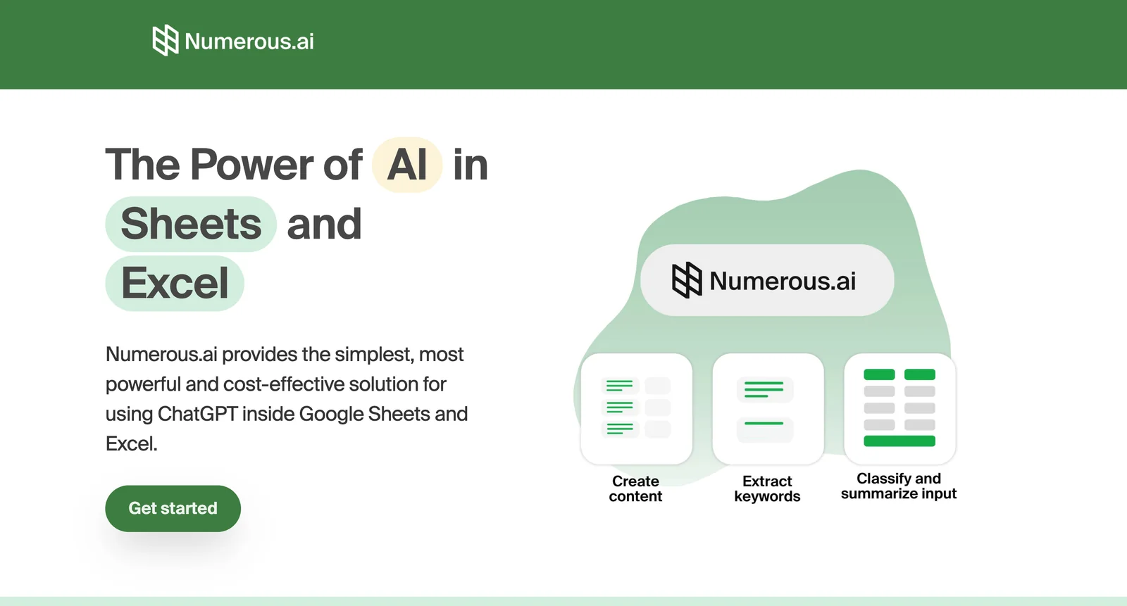Numerous.ai is a spreadsheet plugin that integrates conversational LLM capabilities directly into Google Sheets and Microsoft Excel. It enables users to run natural-language prompts against spreadsheet data to extract text, categorize rows, generate complex formulas, and produce summaries without leaving the spreadsheet interface. By combining GPT-driven understanding with cell-level operations, Numerous.ai speeds up data cleaning, labeling, formula creation, and ad-hoc analysis, reducing manual spreadsheet work and enabling non-technical users to leverage advanced automation and generation inside familiar tools.