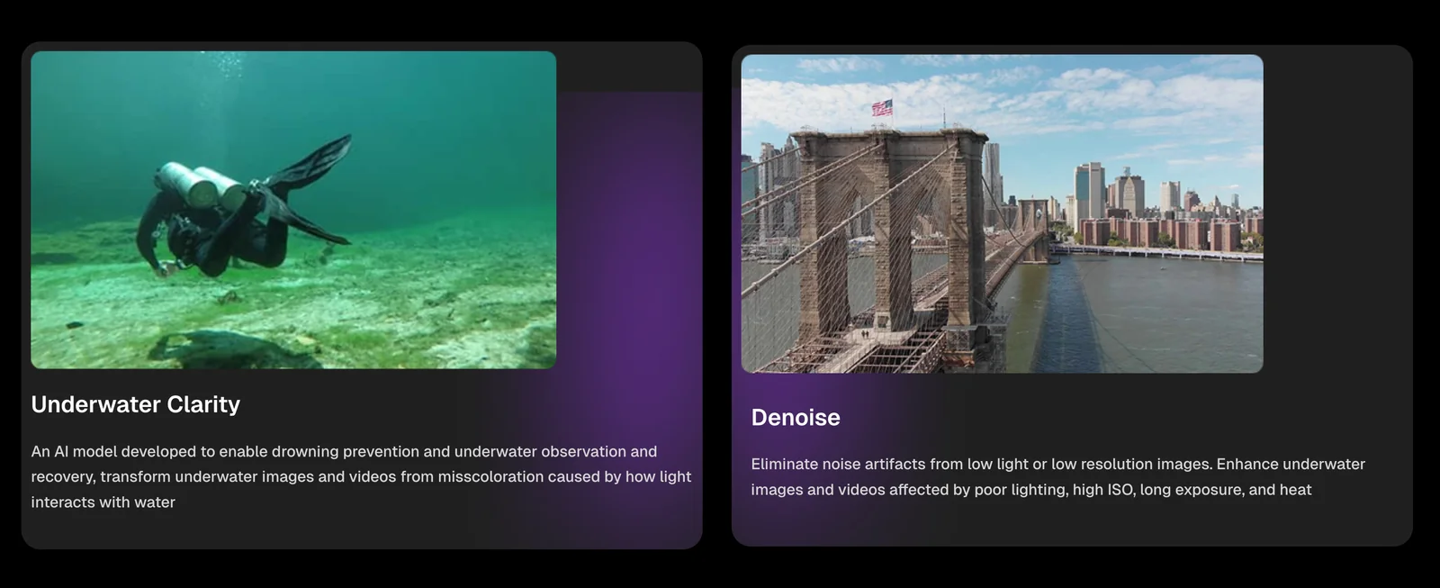 Predictive Equations provides a machine-vision platform that enhances image and video quality, removes artifacts, and upscales media to very high resolutions. The platform also delivers visual analysis tools that detect patterns and surface actionable insights that are otherwise hard to see. Services are offered via cloud and APIs for integration into business workflows and streaming pipelines, enabling automated batch processing, live enhancement, and custom deployments for enterprises and developers.