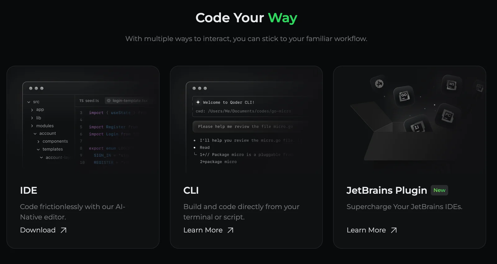 A JetBrains plugin bringing Qoder's agentic coding capabilities — context-aware completion, test generation, and IDE agents — into JetBrains IDEs.