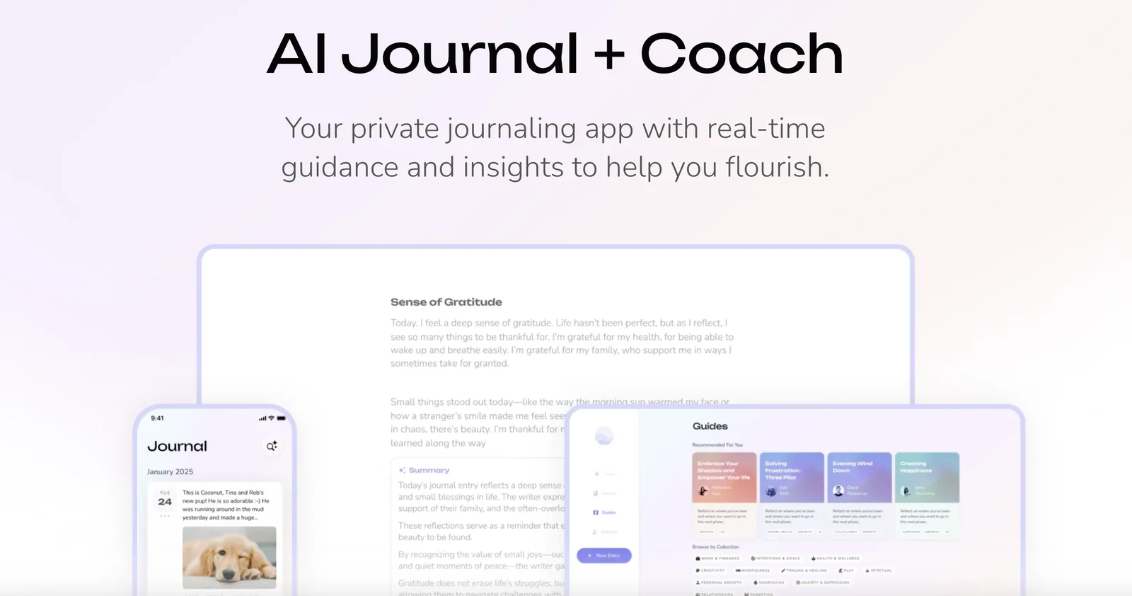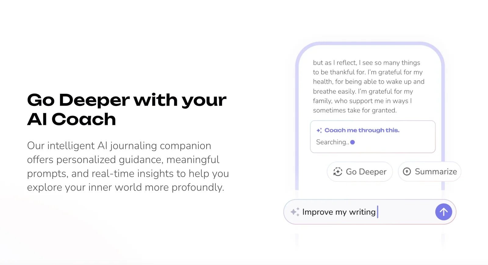 AI-powered journaling app and coach that provides guided prompts and insights to support mental health and yearly self-reflection.
