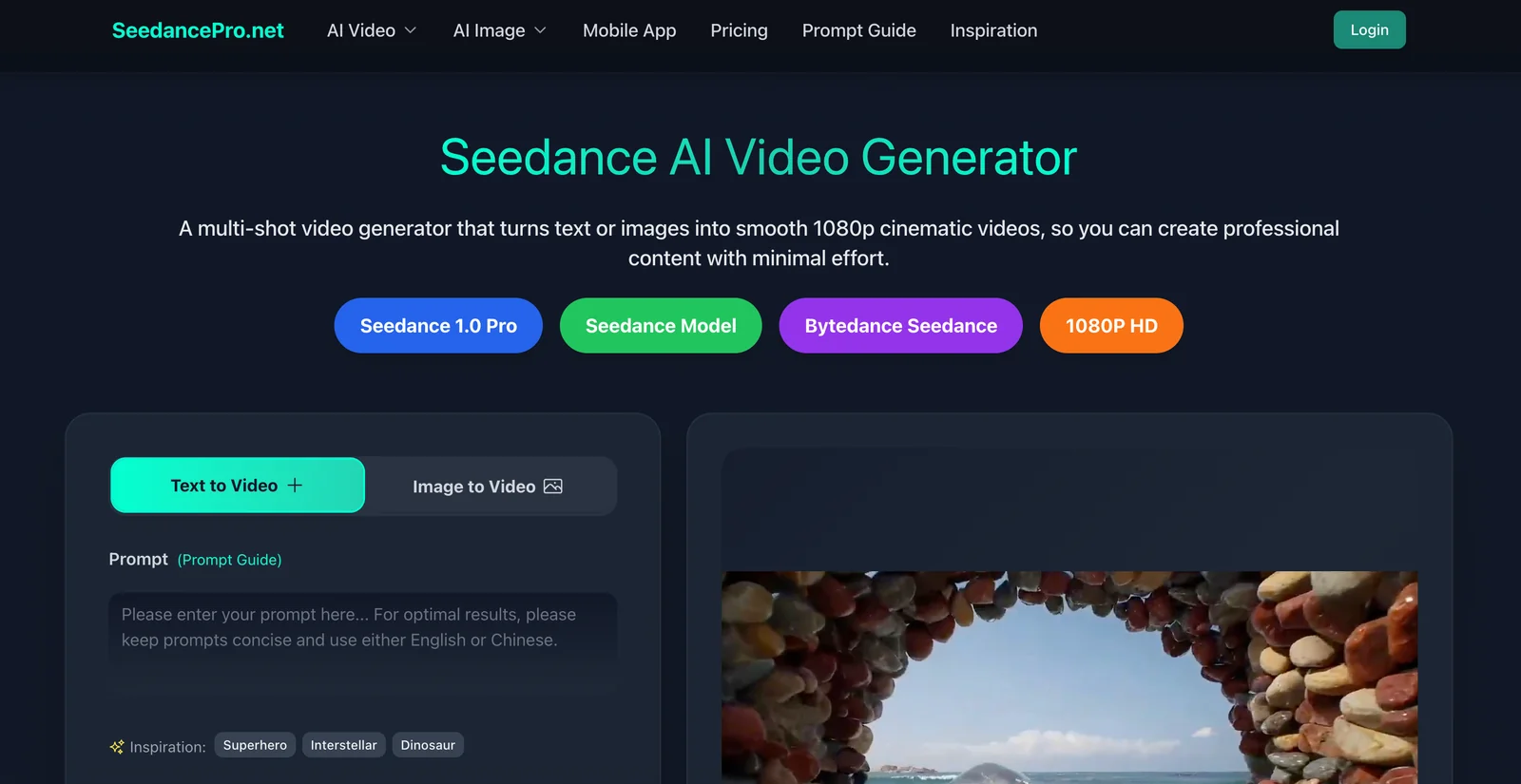 SeedancePro (Seedance AI) is a professional AI-driven video generator by ByteDance that converts text prompts or input images into cinematic, multi-shot videos. It focuses on multi-camera storytelling, producing smooth camera motion, consistent character appearances across shots, and HD visual output. The tool automates scene composition and shot sequencing to create narrative-driven video content quickly, enabling creators to generate polished cinematic clips without traditional production pipelines.