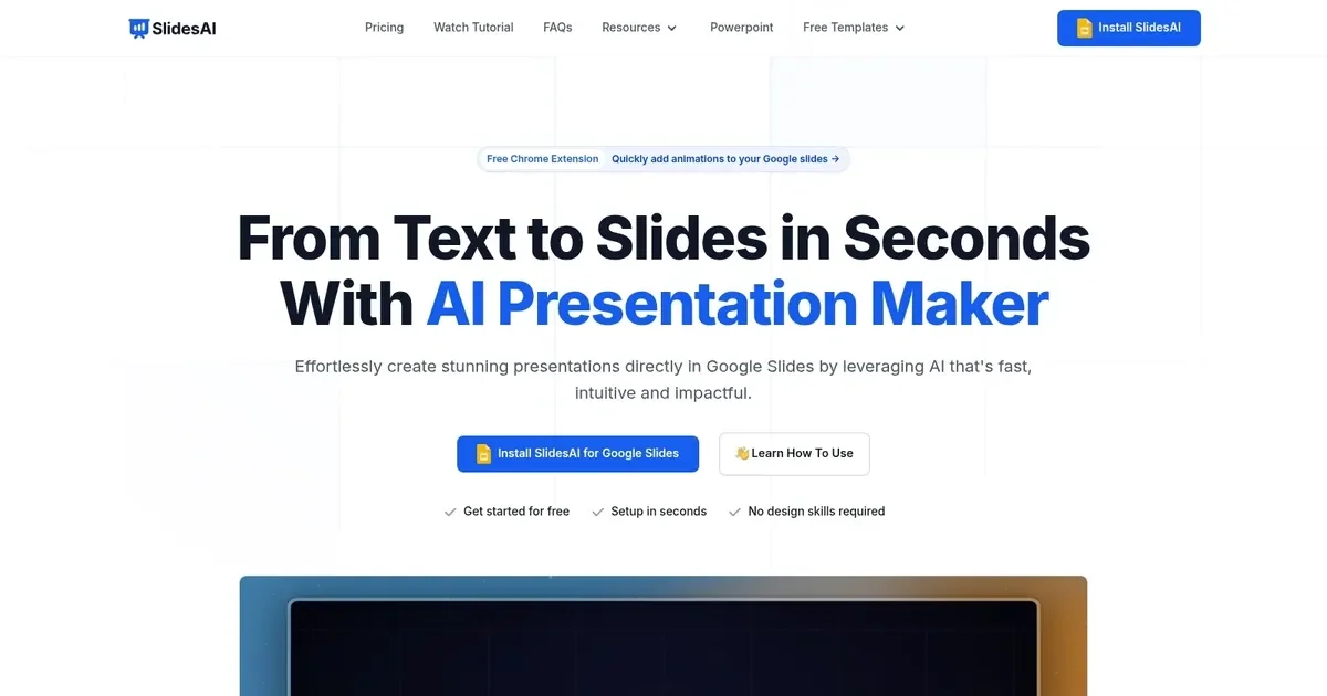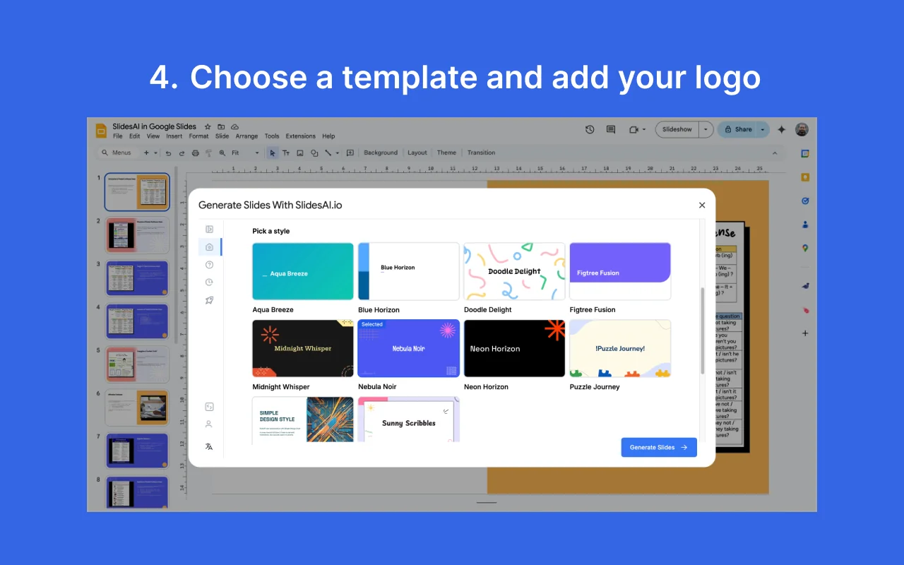 SlidesAI is a web-based presentation generator that transforms plain text, outlines, or documents into fully formatted slides for PowerPoint and Google Slides. It offers preset presentation types, color palettes, and templates to produce visually consistent decks quickly and integrates directly with Google Slides for one-click export. Targeted at teachers, students, and professionals, SlidesAI speeds up slide creation by automating structure, layout, and basic design choices while allowing users to customize styles and refine content after generation.