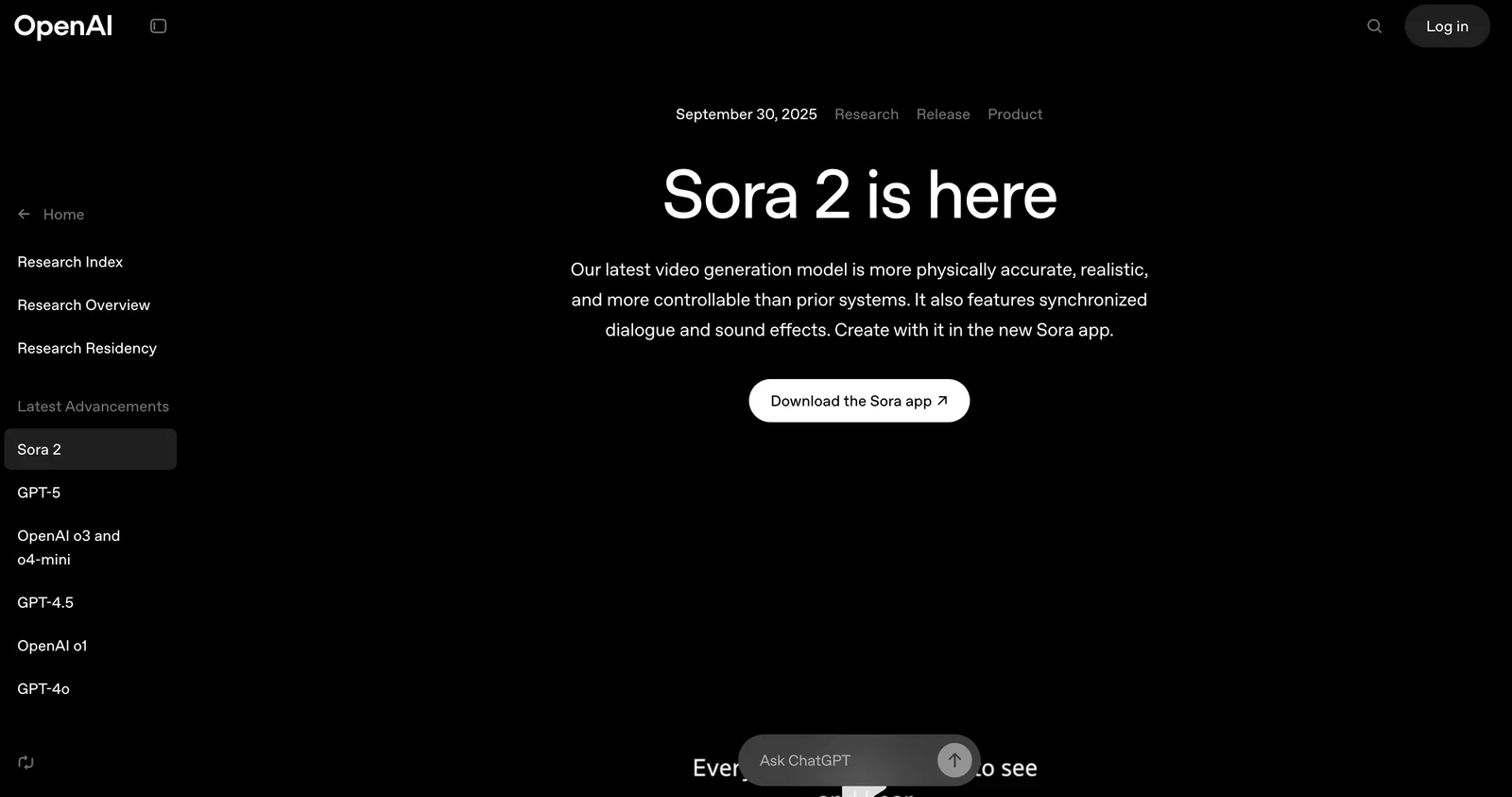A text-to-video model from OpenAI that generates realistic videos, integrated into the Sora app with built-in safety and provenance metadata.