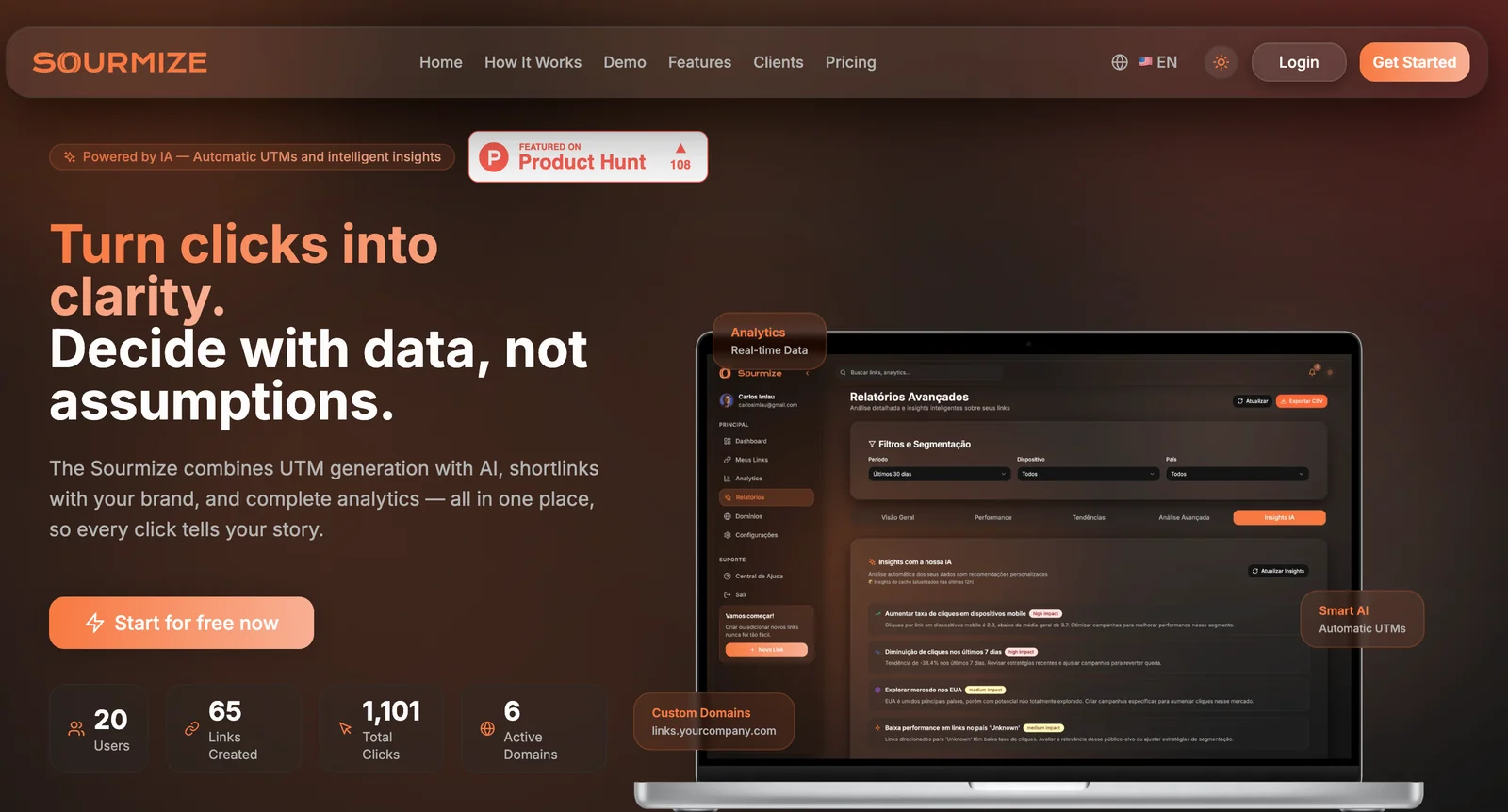 Sourmize uses AI to automatically generate consistent UTM parameters and personalized shortlinks, then combines those links with intelligent analytics to show end-to-end traffic attribution and performance. The platform aims to eliminate manual tagging errors, standardize campaign naming, and surface actionable insights so marketers can decide with data rather than assumptions. Sourmize emphasizes stitching click data into a complete traffic story, simplifying link management and campaign reporting.