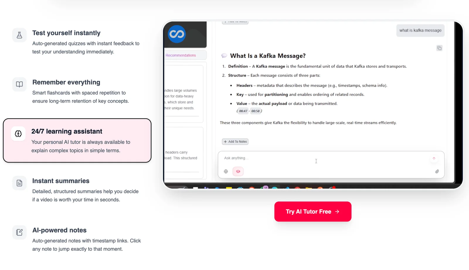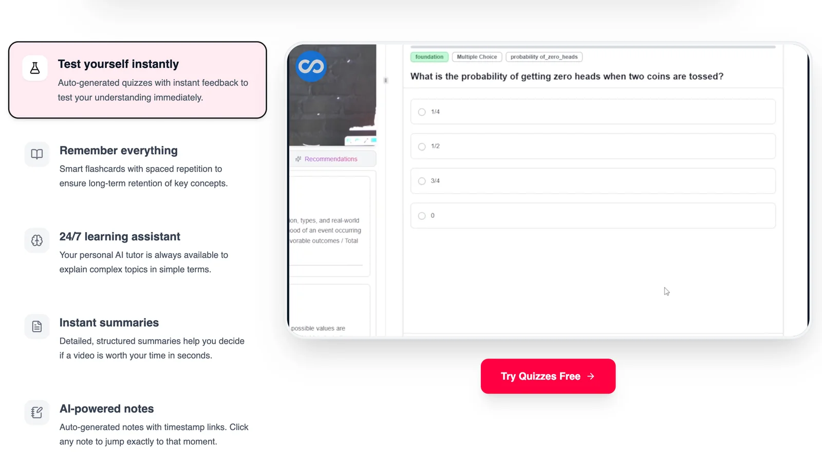 AI study companion that converts YouTube videos, PDFs, and documents into notes, flashcards, quizzes, and summaries.