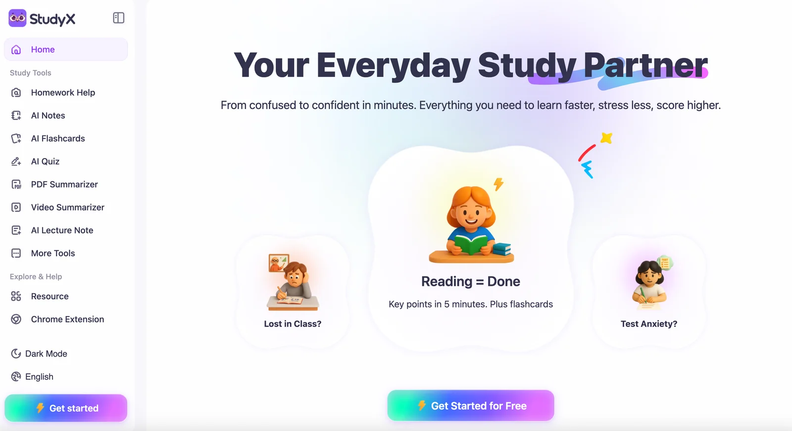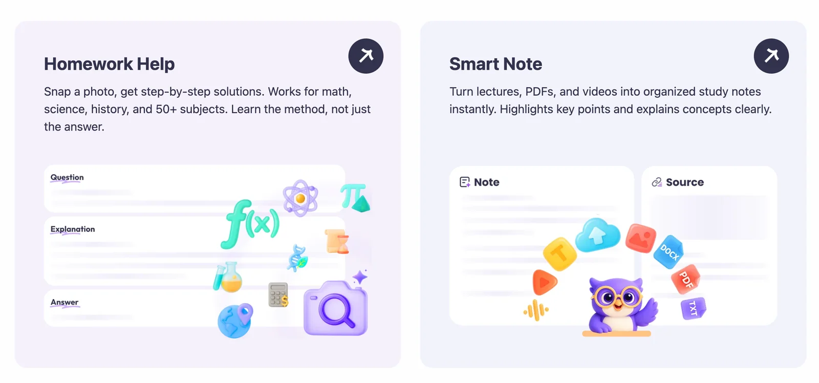 All‑in‑one AI study partner for homework, notes, flashcards, math solving and test prep across platforms.