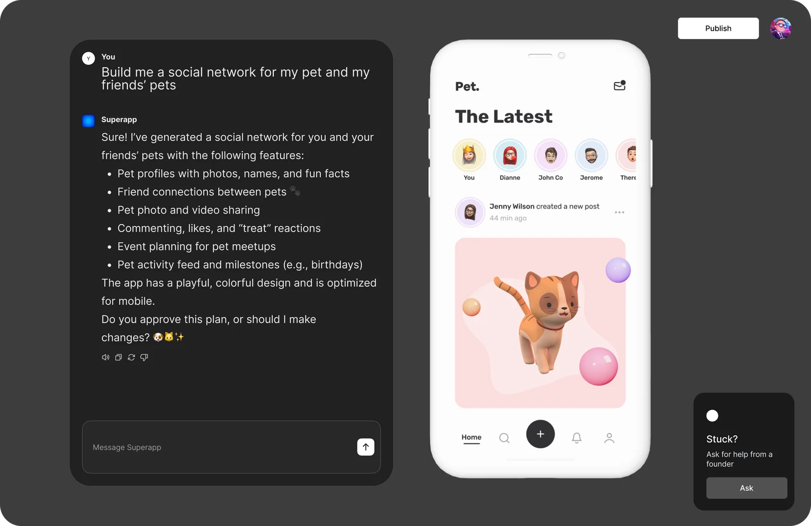 Superapp lets non-developers and product teams turn app ideas into native iOS applications using AI-driven generation and no-code authoring. The platform automates app creation workflows—producing native iOS output and providing visual customization, previews, and publishing assistance—so users can prototype, iterate, and deliver App Store‑ready apps faster than traditional development.