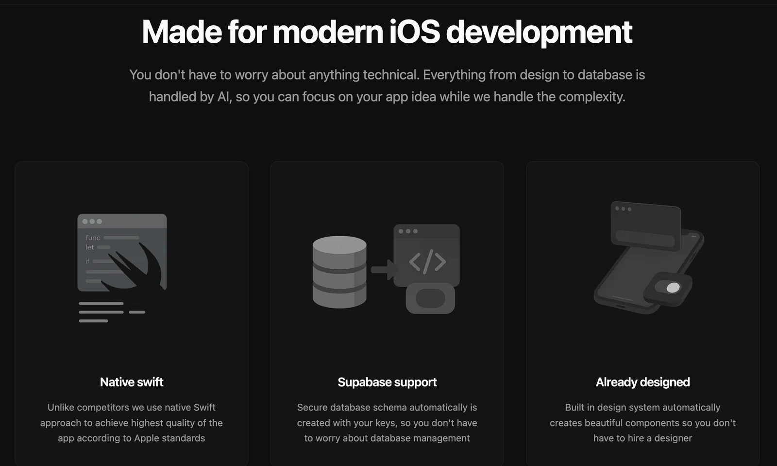 Create native iOS apps from ideas using AI, without writing code.