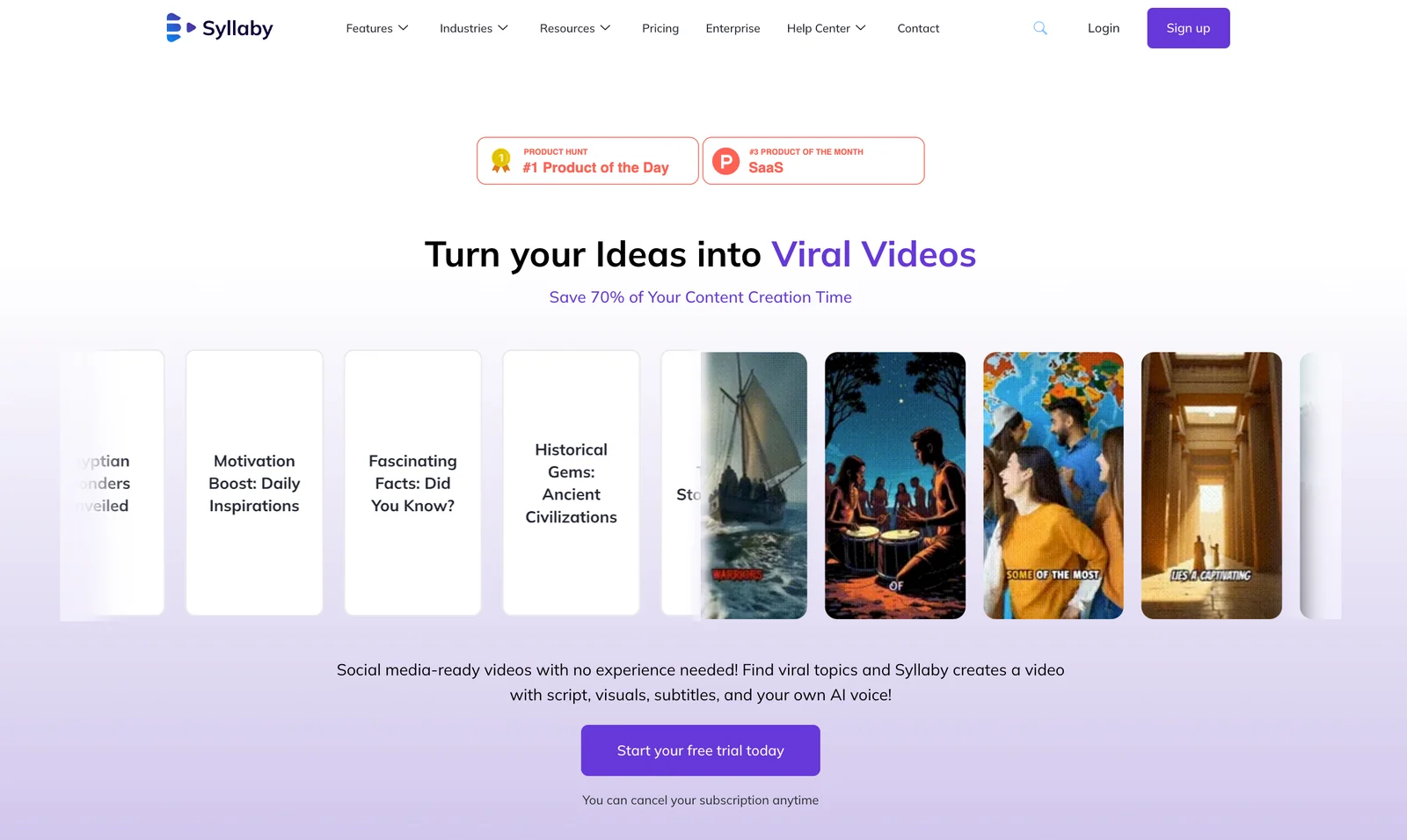 Syllaby V3.0 is a video creation platform that automates the end-to-end production of social-media videos: it finds trending topics, drafts scripts, generates visuals and subtitles, synthesizes AI voices and offers AI avatar options for faceless or cinematic content. The platform targets creators and marketing teams by streamlining ideation, content strategy and publishing workflows so teams can produce viral-ready videos quickly and at lower cost. Syllaby positions itself as an agency-friendly toolkit for scaling video marketing through templates, automations, and integrated publishing.