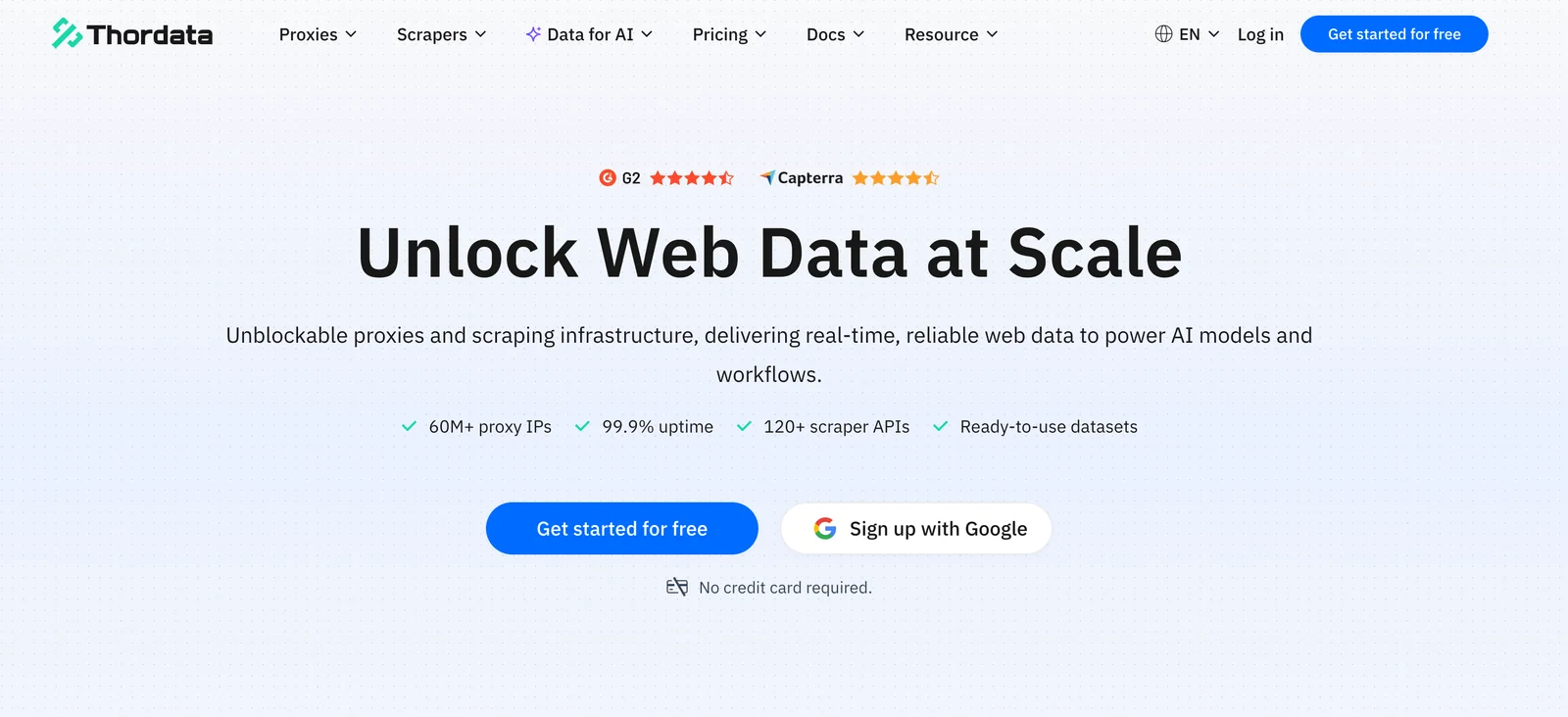Thordata provides precision proxy solutions designed to enable reliable web data scraping and automated browsing at scale. The service offers large global proxy pools and a zero-code management dashboard that simplifies provisioning, profile management, and switching between proxy endpoints. Thordata also supplies a Chrome proxy extension for creating unlimited browser profiles and rapid profile switching, alongside competitive subscription plans and customer-focused pricing. Customers cite stable, fast connections and an easy-to-use dashboard, making Thordata suitable for large-scale scraping, monitoring, and automation workflows.