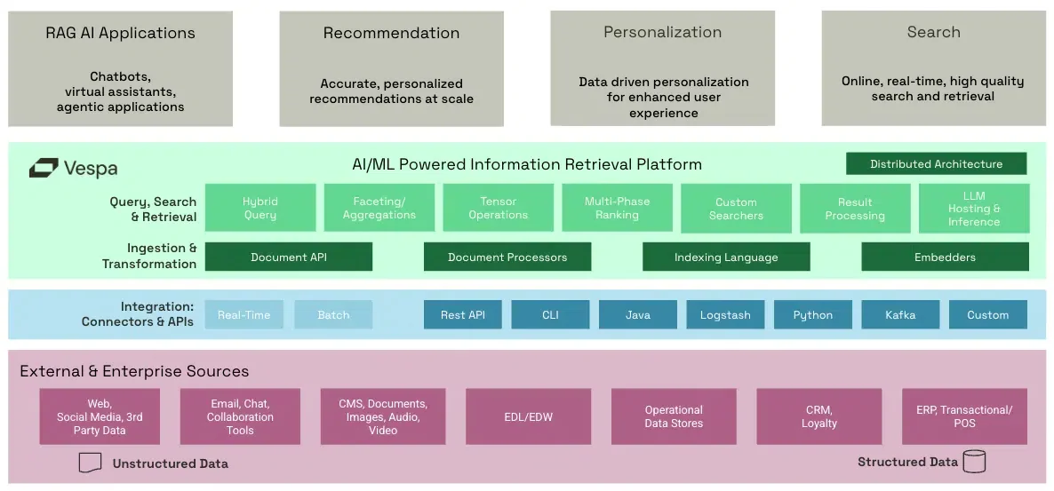 Open-source big data serving engine for low-latency structured, text and vector search, ranking and real-time decisioning at scale.